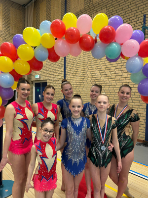 Zoë, Jody & Kyra begonnen de wedstrijd samen met Desteni, Anne-Lot & Yara. Beide teams lieten een prachtige oefening zien en wisten ook een podiumplaats te bemachtigen!